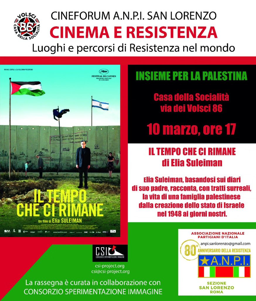 La sezione ANPI di San Lorenzo e il CSI, nell’ambito della rassega “Cinema e Resistenza”, dedicano un ciclo di tre film dedicati alla Palestina.