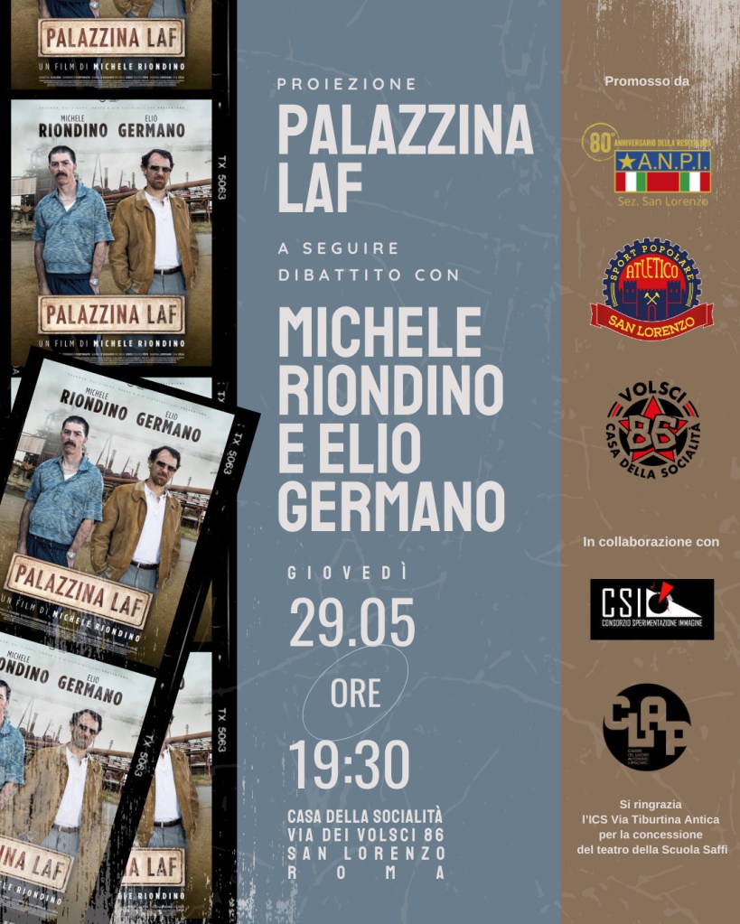 La proiezione si svolgerà giovedì 29 maggio presso il teatro della scuola Saffi nel quartiere San Lorenzo di Roma