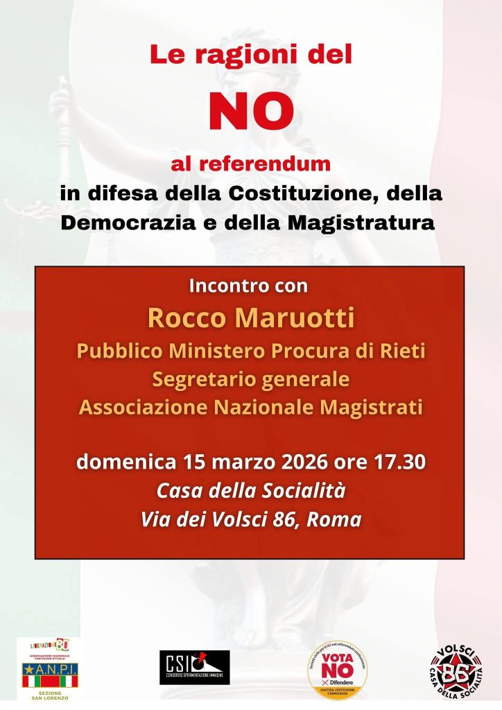 Per questo motivo sosteniamo le ragioni del NO al referendum, organizzando un incontro di approfondimento con il segretario generale generale dell’ANM Rocco Maruotti.